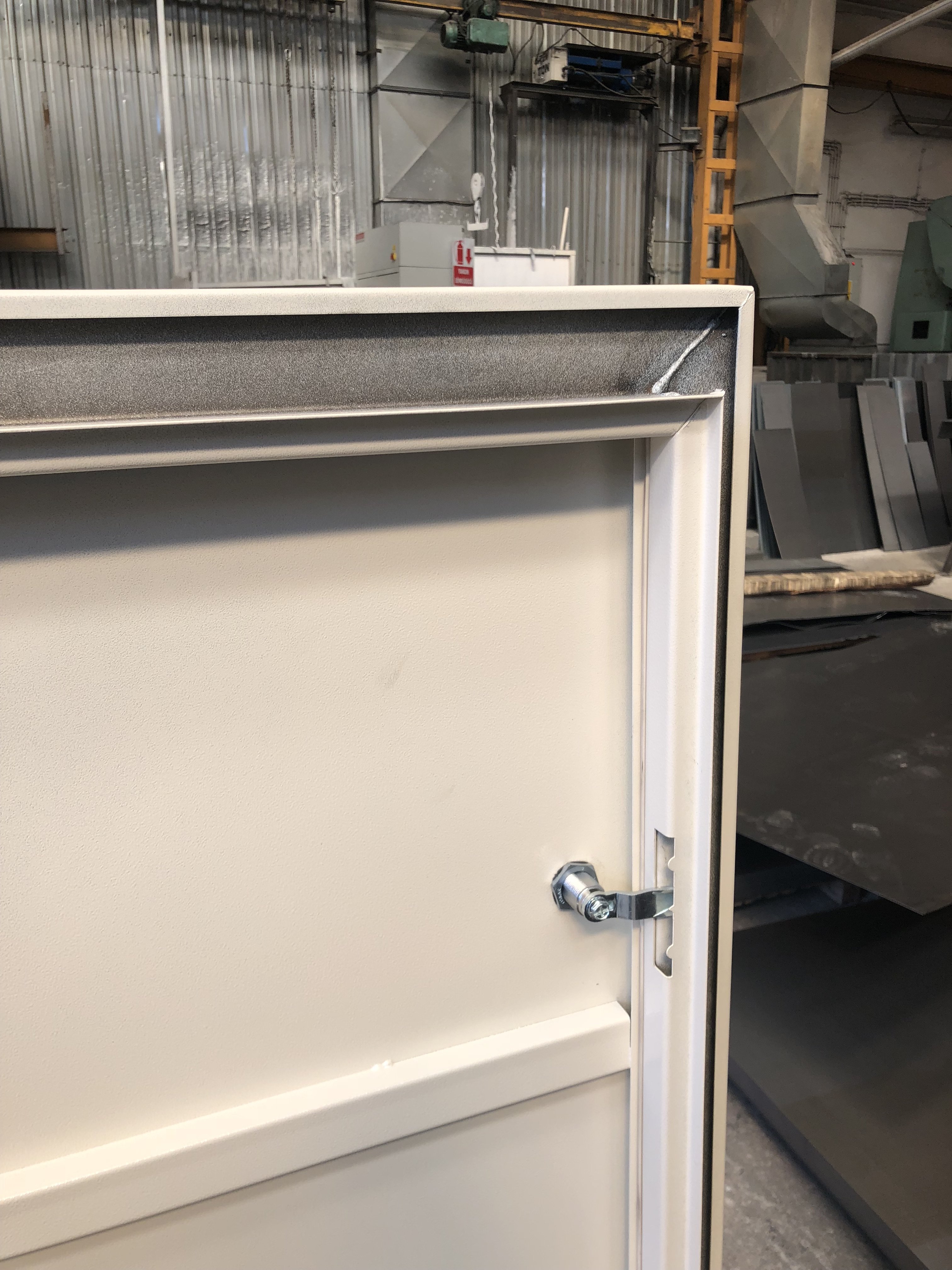 - Kapı kasası 1.2-1.5 mm sactan yarım köşe kasalı, özel fitil yuvalarıyla birlikte üretilmektedir.